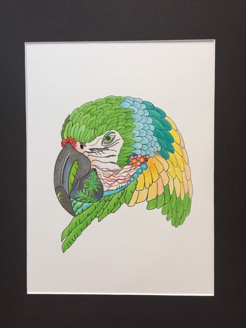 Green Parrot Parrot Drawing Wildlife Art Bird Art Bird Drawing Etsy India